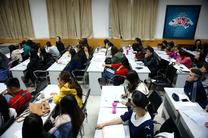 11月13日下午,365英国上市公司职工兴趣课堂之“先咏教你学韩语”在365英国上市官方网站多媒体教室火爆开启,来自公司汉语言文学专业四年级的韩国籍职工崔先咏为大家奉献了一节精彩纷呈的韩国语及韩国文化课程,吸引70余名中外师生热情参与。