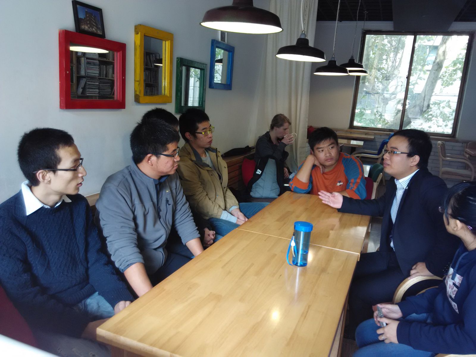 在师大路咖啡馆安静的氛围中,孙家琨学长首先和大家分享了他在求职过程中的选择和感悟,介绍了成功择职的几个步骤:即确立志向——分析自我——选择职业——积极面试。同时,他还强调要考虑企业的发展潜力,切忌贪多图大,鼓励大家在有潜力的中小企业多多历练,施展才华。