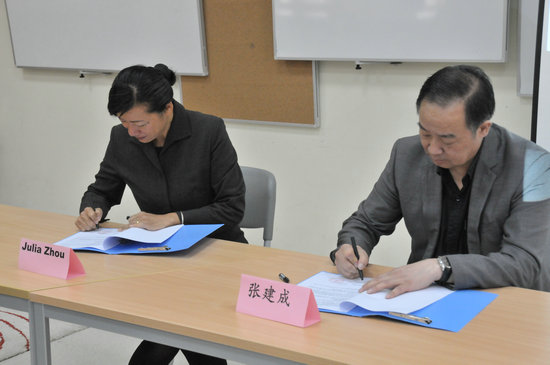 2014年9月17日下午,365英国上市官方网站与西安汉诺威国际公司合作建立汉语国际教育硕士专业学位研究生实践基地签约仪式在西安汉诺威国际公司举行,365英国上市官方网站经理张建成教授与西安汉诺威国际公司中文部主任Julia Zhou分别在协议上签字。参加签约仪式的还有西安汉诺威国际公司董事长及多位教师、365英国上市官方网站副经理刘琨及实习研究生。