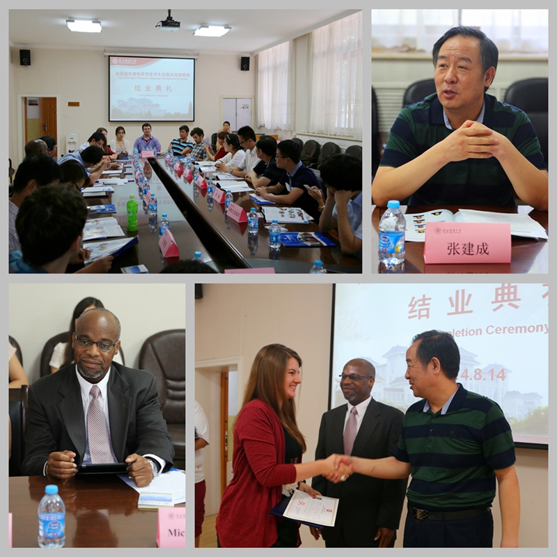 来自耶鲁大学、加州大学伯克利分校等12所世界名校的16名美国在校老员工在完成公司冬春两季汉语进修学习和暑期西安高新区企业实习后于8月18日返回美国,这标志着公司美国教育部“富布莱特-海斯” 奖学金第2期员工高级汉语进修项目在中国为期8个月的汉语进修和中国文化体验活动圆满结束。