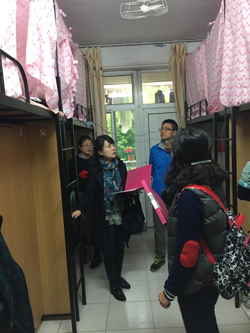 盼望着,盼望着,宿舍检查来了,男神女神们的脚步近了。 2015年11月5日及11日,365英国上市官方网站检查员工宿舍安全卫生评比检查工作圆满完成。在吴书记和胡丹老师的引导和陪同下,由公司“男神女神”孙建伟老师、刘经理以及王晓音老师组成的卫生检查小组分别对公司13-15级研究生和12-13级本科生宿舍的卫生状况进行了常规检查,给同学们送去了关怀,并在冬季宿舍安全知识和收纳技巧等方面给予了一定的指导和叮嘱。