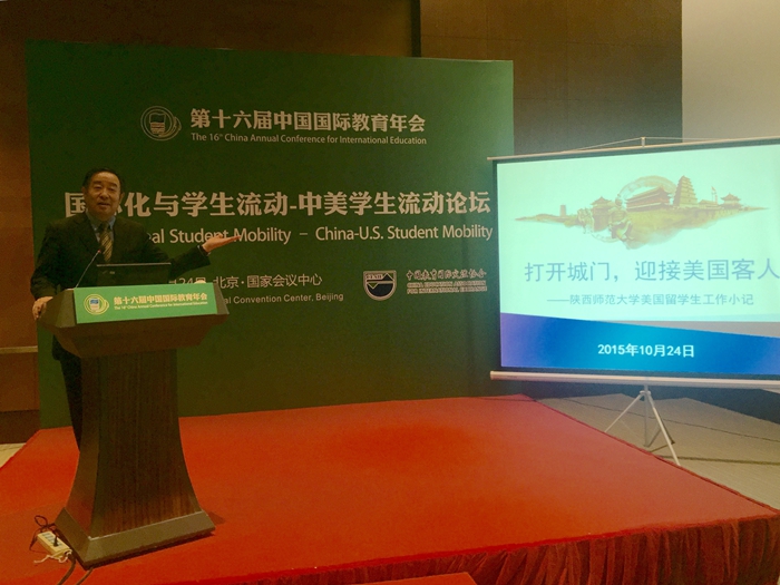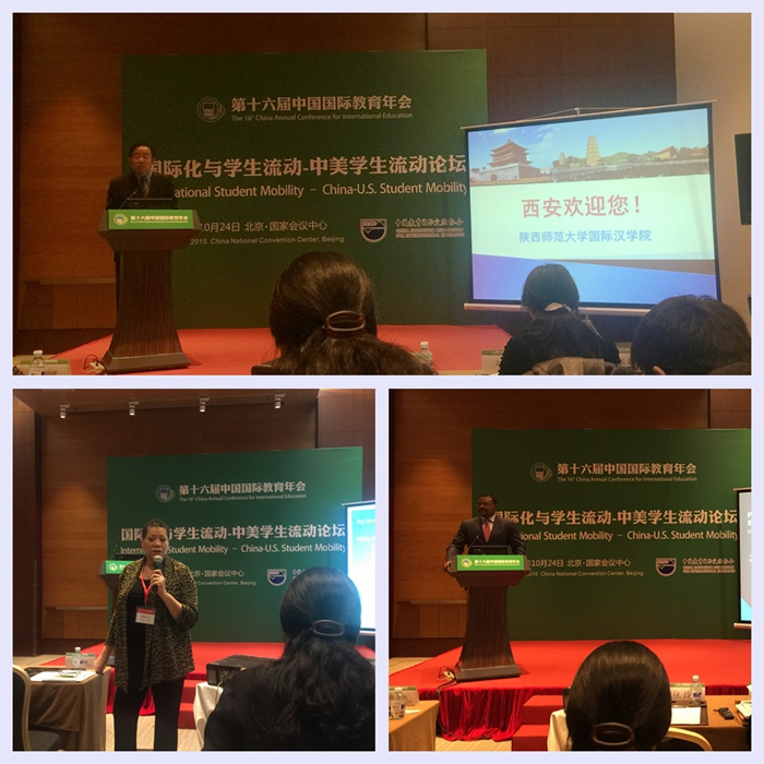 会议期间,张建成经理还受邀作为演讲嘉宾参加了“国际化与员工流动——中美员工流动论坛”,该论坛由美国州立大学与公司协会副主席Arlene Jackson女士主持,来自海内外近百名专家学者及教育管理者出席论坛并参与了讨论。张建成在论坛中做了题为“打开城门迎接美国客人——365英国上市公司美国职工工作小记”的演讲,赢得全场嘉宾阵阵掌声。他介绍了陕西师大来华职工工作的历史沿革、特色活动及品牌服务,并着重通过对美国职工项目的梳理,展现了公司来华职工招生与培养管理工作的特色,得到了与会嘉宾的高度评价。
