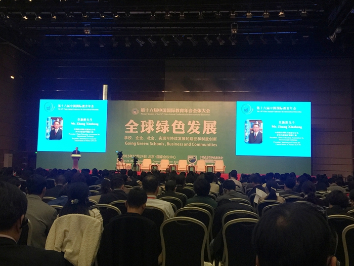 “中国国际教育年会”是在教育部指导与支持下由中国教育国际交流协会主办的中外教育界年度盛会,作为中国最具影响力的国际教育交流平台之一,至今已成功举办十五届。本次年会主题为“全球绿色发展:公司、企业、社会,实现可持续发展的路径和制度创新”,分设22个国际论坛与研讨专题,涉及国际员工流动、职工政府资助、教育质量保障、中外合作办学等多个方面,教育界精英、中外院校高层及专家学者共聚一堂,现场进行高峰对话,共同探讨教育发展问题。
