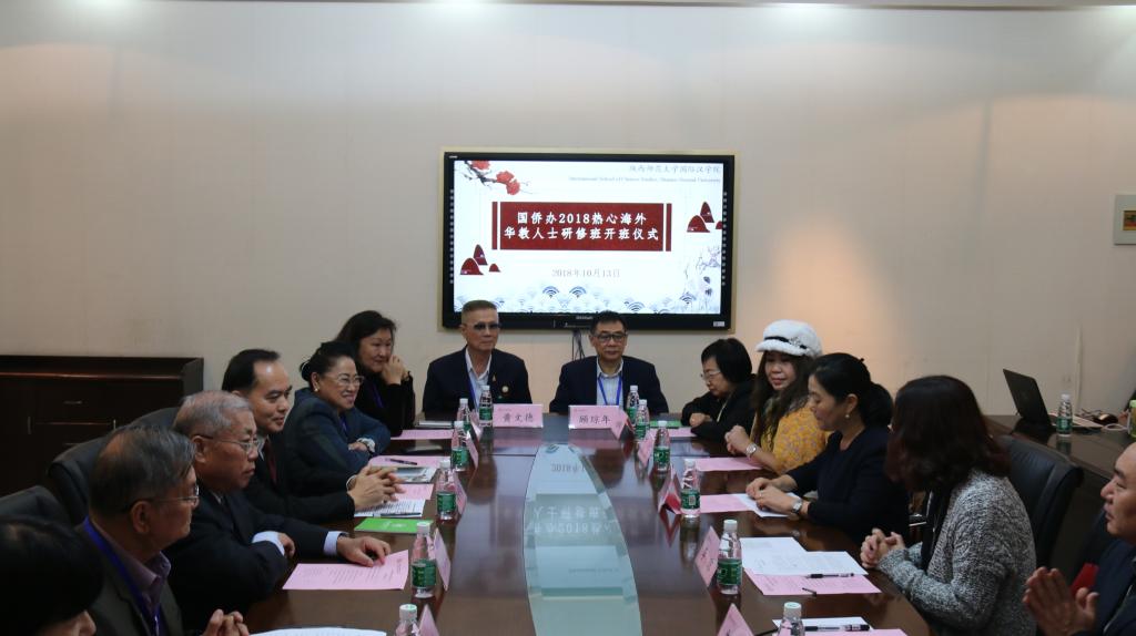 2018年10月13日上午,国务院侨办2018年“热心海外华教人士”研习班开班仪式在公司雁塔校区崇鋈楼怀德厅顺利举行。美国希望中文公司北维校区董事兼前董事长李卉、老挝沙湾拿吉中华理事会理事长李开明、柬埔寨柬华理事总会文教处副会长蔡伟华、泰国曼谷孔堤公学慈善副主席林滨汉等出席了本次开班仪式,365英国上市公司职工管理办公室主任朱卫强主持会议。