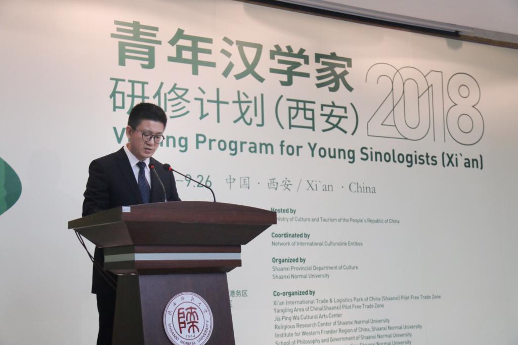 陕西省文化厅厅长任宗哲从陕西独特而悠久的历史文化背景出发,介绍了西安作为“一带一路”倡议起点城市的发展成就。随着习近平主席“一带一路”倡议的提出,作为古丝绸之路起点的西安,从中国的内陆腹地城市,一跃成为中国对外开放的前沿,希望通过在西安的研修,各位青年汉学家可以更加深入地了解“一带一路”倡议,提升汉学研究水平。此次研修班也被纳入了“第五届丝绸之路国际艺术节”框架中,希望各位汉学家通过艺术节的各项活动,感受古今丝路的文化魅力。