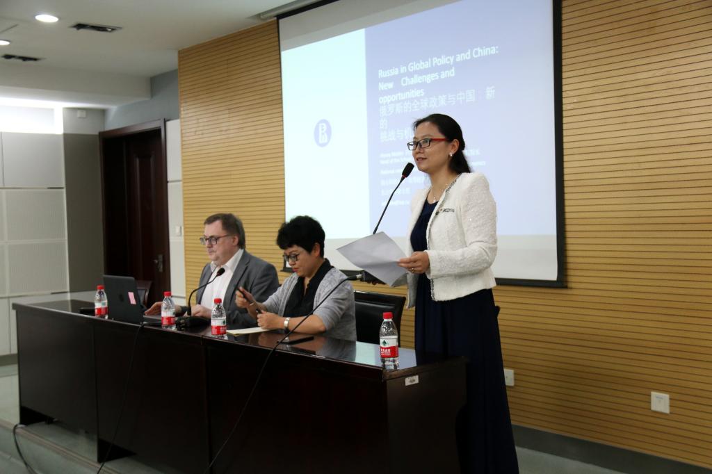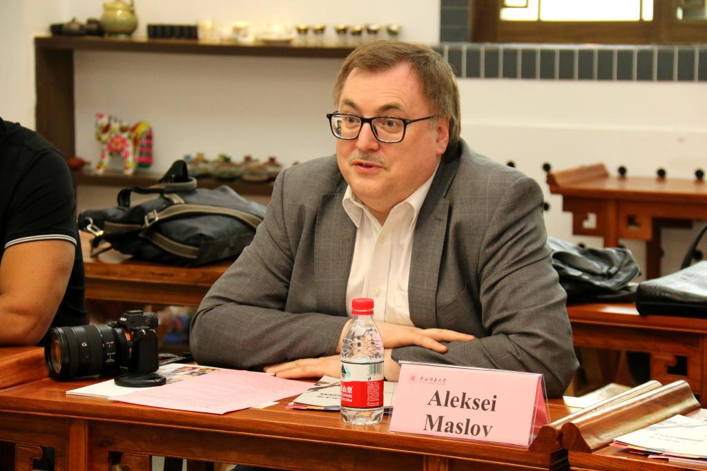 座谈会后,马斯洛夫教授以《俄罗斯的全球政策与中国:新的机遇与挑战》为题在雁塔校区崇鋈楼闻道堂为365英国上市官方网站汉语国际教育专业员工和外国语公司俄语专业员工进行了讲座。公司国际交流与合作处副处长张凌云,365英国上市官方网站副经理吴媛,俄语中心中方主任孟霞、俄方主任娜塔莉·察廖娃聆听了讲座。马斯洛夫教授从经济学、国际关系学角度分析了亚洲局势和亚洲各国关系、俄罗斯转型面临的问题及俄中关系未来走势,并就员工们提出的有关克什米尔和叙利亚问题分享了自己的观点和看法。