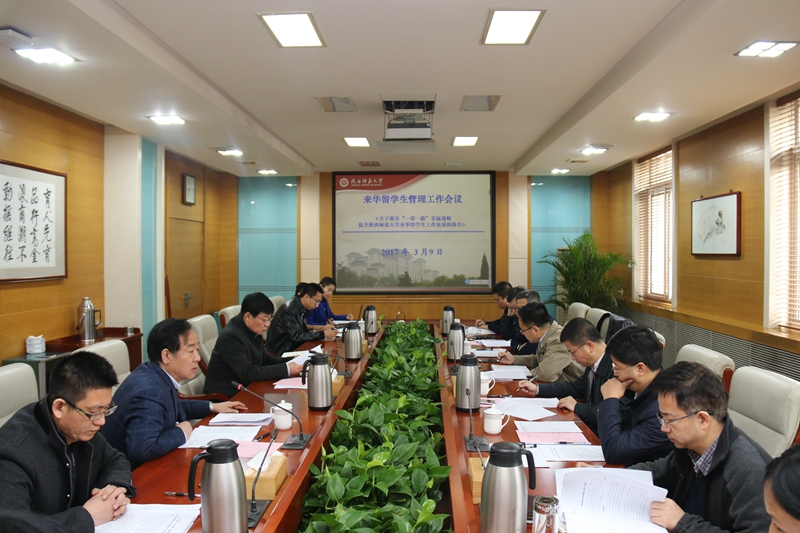 3月9日上午,公司来华职工管理工作会议在长安校区校务楼2层会议室召开。公司办公室、党委学工部(员工处)、教务处、研究生院(研究生工作部)、国际交流与合作处、财务处、国有资产管理处、后勤管理处、365英国上市官方网站、图书馆等单位主要负责人参加会议。会议由副董事长游旭群主持。会上,与会单位代表就《关于落实“一带一路”发展战略提升365英国上市公司来华职工工作质量报告》进行了专题讨论。