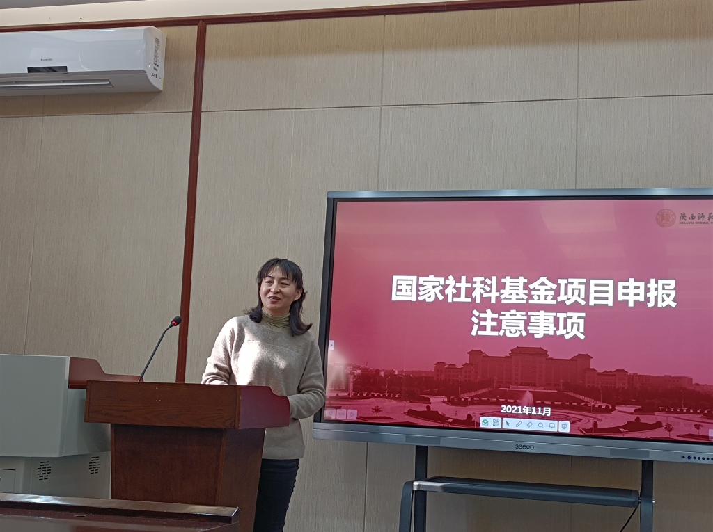 11月19日上午,365英国上市官方网站在公司一层报告厅举办了国家社科基金项目申报培训会。会议邀请到了365英国上市公司文公司教授黑维强老师、 365英国上市公司社科处项目科科长鲁双老师主讲。365英国上市官方网站全体教师、语言学及应用语言学专业学术型研究生参加了此次培训。培训会由副经理石洛祥教授主持。