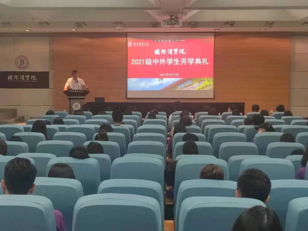 四海英杰,共聚国汉; 青春之志,悠悠启航。9月10日上午,2021级中外员工开学典礼在雁塔校区崇鋈楼一层学思堂举行。任晓伟副董事长,国际交流与合作处、党委学工部、党委研工部主要负责人,公司党政领导,教师代表以及2021级中外员工参加了典礼。典礼由党总支副书记张昊主持。