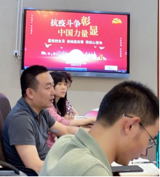 李锦、曾柱、张喆选择公司及身边教师的抗疫故事进行分享。李锦老师讲述了支部书记冯雪俊老师陪伴语言不通的员工去医院进行身体检查的故事,曾柱老师讲述了身边的汉语教师朋友在各个国家的努力,张喆老师分享了疫情期间遇到的毕业生求助的故事等等,这些故事让大家再一次认识到“一日为师”的责任,在疫情期间,老师更应该将员工放在心中,关心员工身心健康,尽力帮助员工解决各种困难。