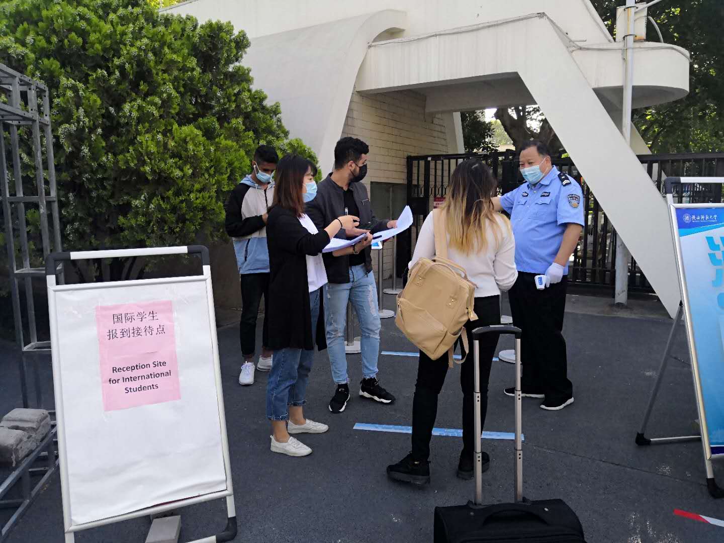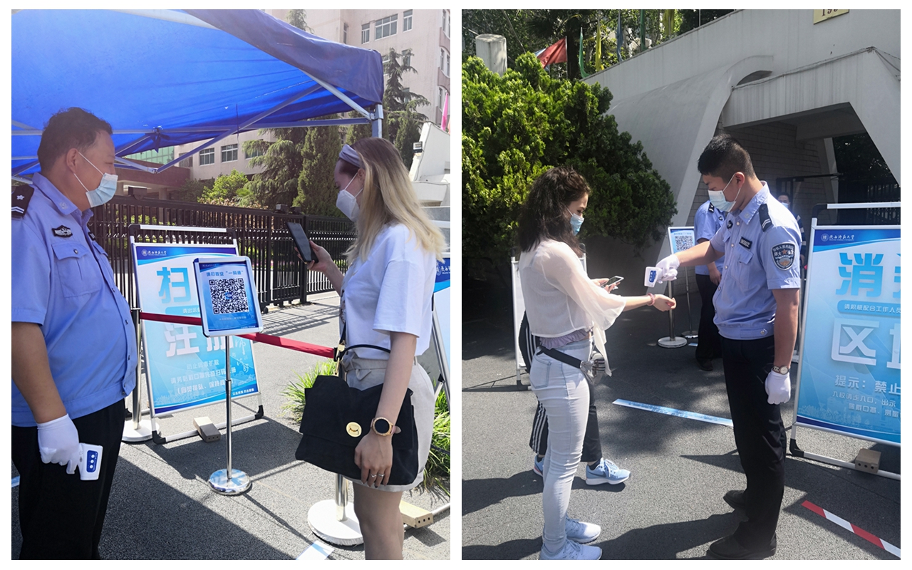 5月15日是国际员工返校的第二天,这一天,11名因疫情滞留在陕西省内以及有强烈返校需求的毕业生共计11人返校。行李消杀、测温、检查健康码、登记注册……在新西门门口完成了返校首道程序后,他们终于踏进了熟悉的校园。公司副董事长任晓伟来到现场指导工作。