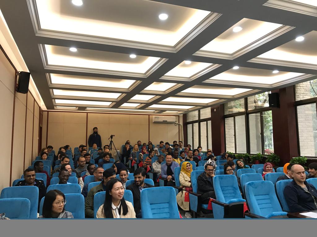 讲座开始前,到场的硕博职工在相关工作人员的安排下,整齐有序的完成了签到工作。讲座开始,陕师大职工管理办公室副主任李晶老师对本次讲座主讲人张宝辉教授进行了全面仔细的介绍。张宝辉教授在大家热烈的欢迎声中开始本次讲座。讲座正式开始,张宝辉老师与职工们进行了亲切友好的互动,问大家分别来自哪个国家,选择陕师大的原因等等,整个过程轻松活泼,现场职工们热情高涨,对张宝辉教授的讲座表现出极大兴趣,回答问题积极踊跃,互动性强。