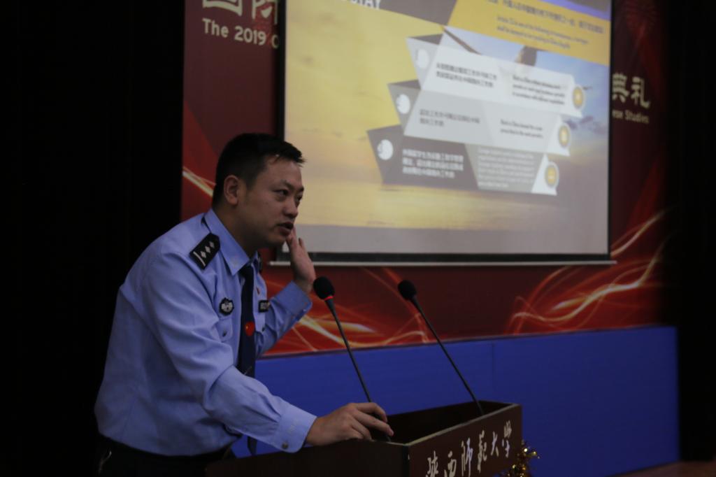 会后,来自西安市公安局出入境管理处的警官代表为全体职工新生做了中国法律法规及职工安全教育。