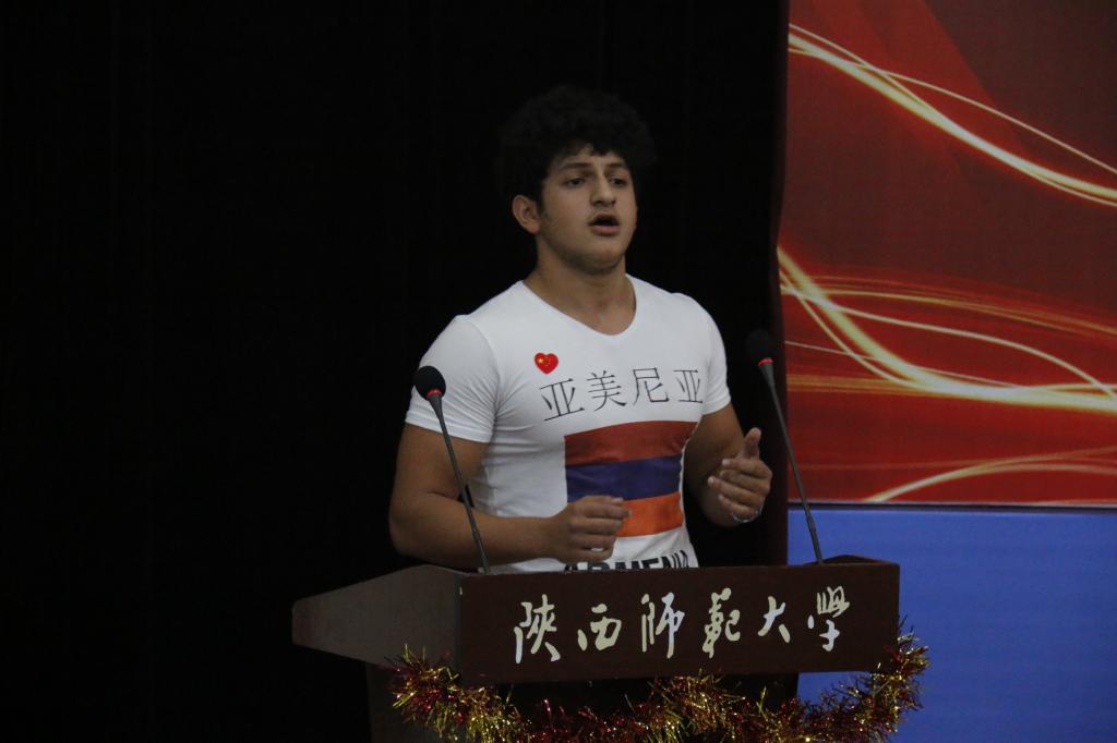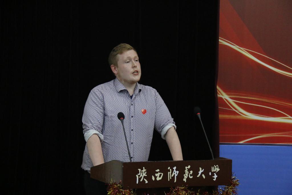 邵英、亚美尼亚籍职工迪然、刘汉斌、英国籍职工苏德锐分别代表公司教师、职工老生、中国研究生新生和职工新生做了发言。公司副经理吴媛代表公司向全体新生代表赠送了学习用品及校徽,开学典礼在与会人员的大合影中圆满结束。