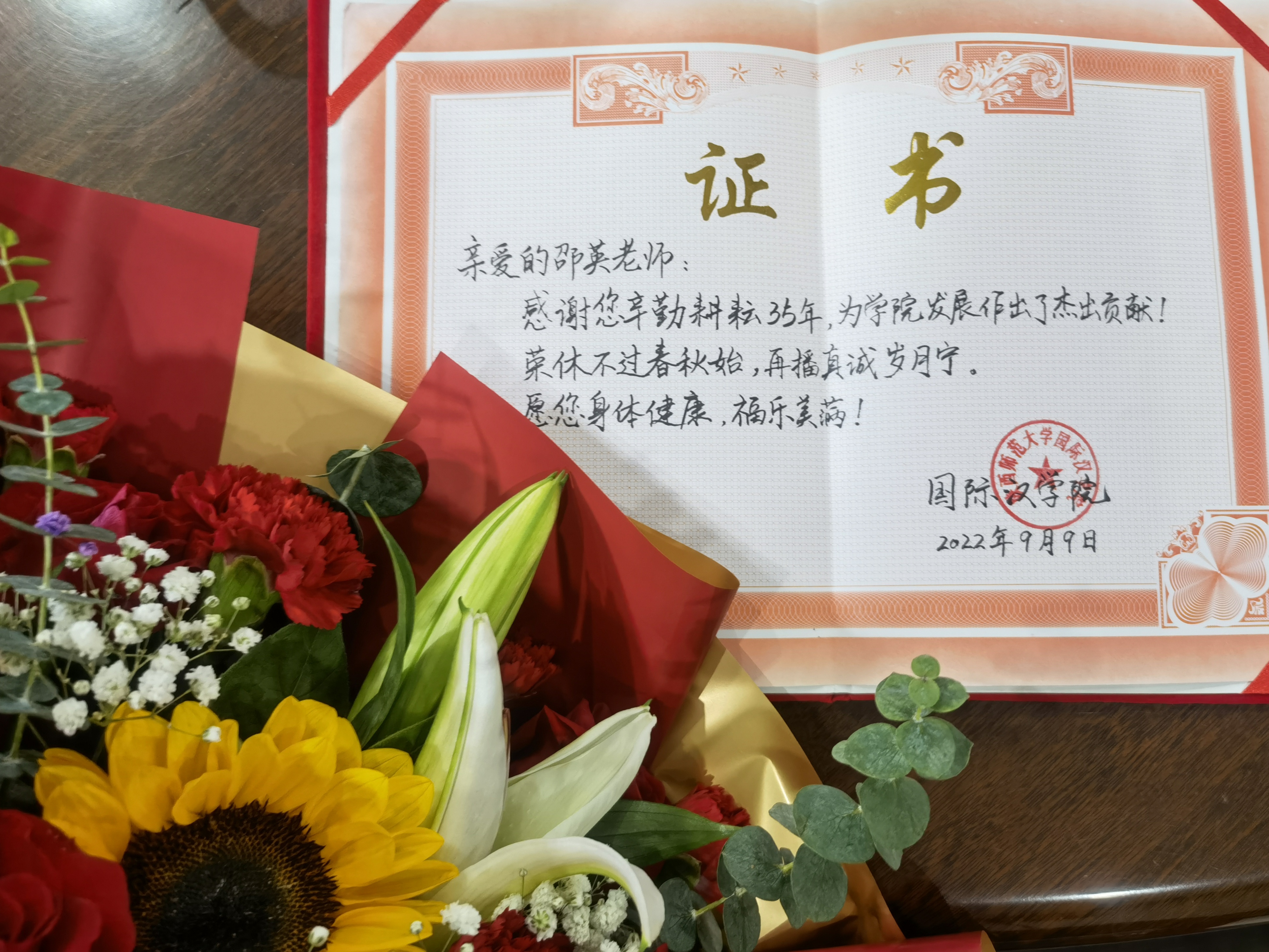 石洛祥经理回顾了邵英老师从教35年以来为公司发展做出杰出贡献,代表公司向邵英老师数十载投身职工教育事业,服务公司发展的辛勤付出致以崇高的敬意,并为邵英颁发了荣休证书。