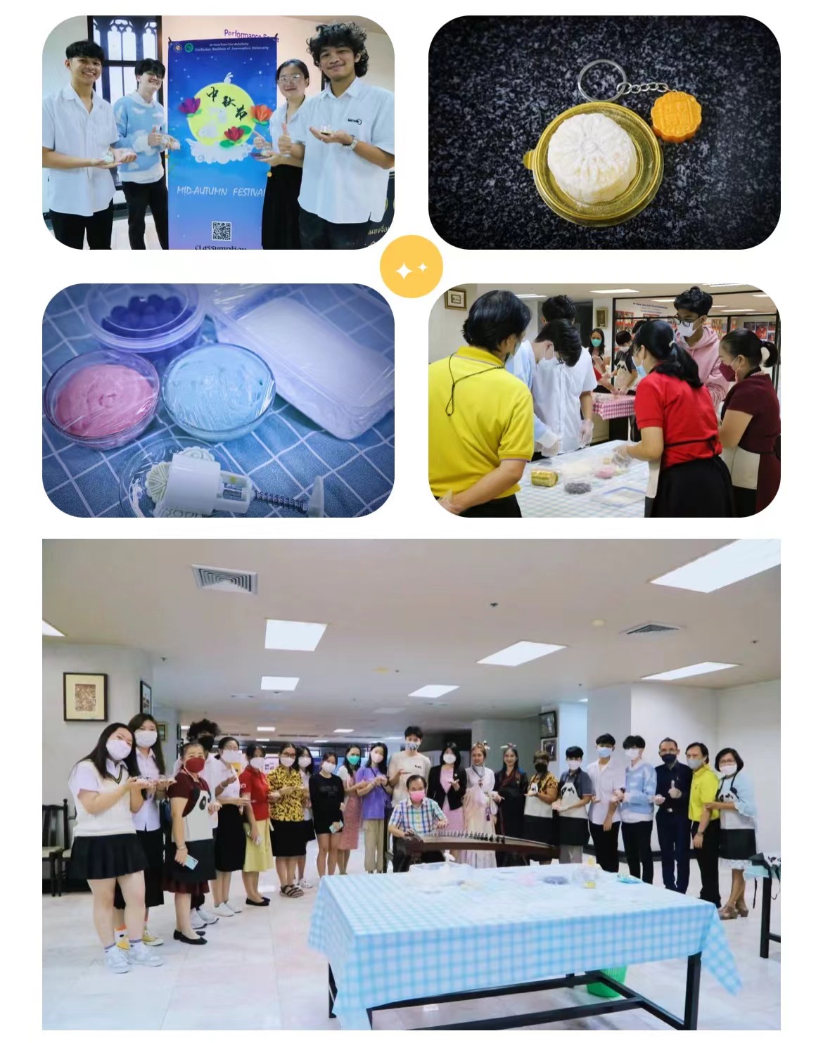 我所在的易三仓大学孔子公司在公司图书馆举办了冰皮月饼制作活动。在活动现场,不仅有古筝老师表演《月亮代表我的心》,还有泰国员工穿起古装,扮演嫦娥和后羿。“海上生明月,天涯共此时”,无论身在何处都可以共赏同一轮明月,共度佳节。值此之际,祝大家中秋节快乐,万事胜意。