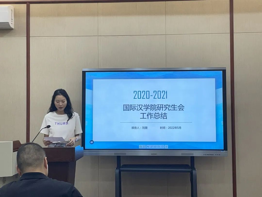 会议第二项是研究生会年度总结汇报。研究生会主席团执行主席刘薇与研究生会主席团成员梁蕾和陆源对公司举办的活动进行年度汇报与总结反思。团总支副书记倪庆、团总支组宣部负责人王志新、文体部成员付方玲、学术部负责人韩雅欣、志愿服务部负责人崔斯维、宣传部负责人任娟对所承办的活动和工作内容进行详细介绍。