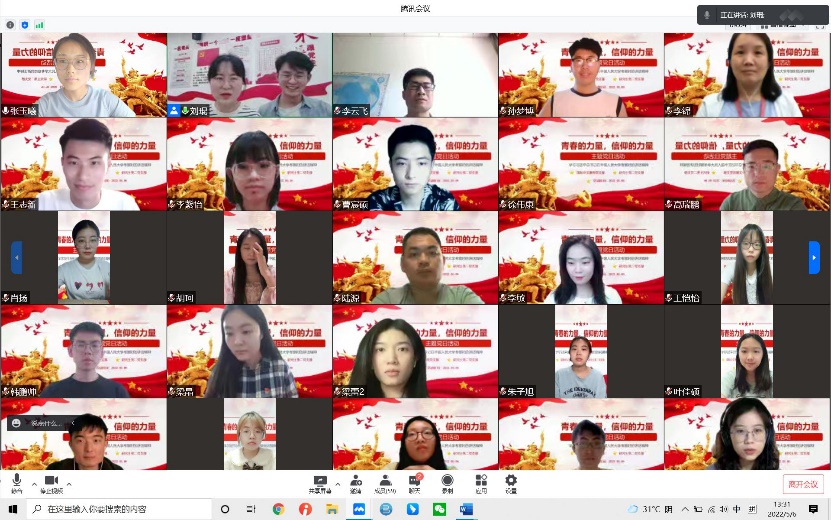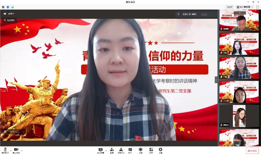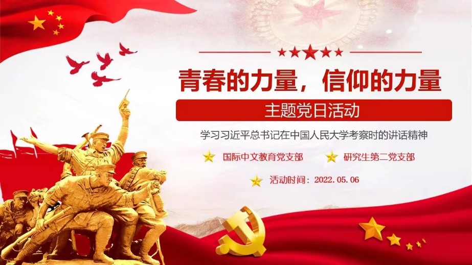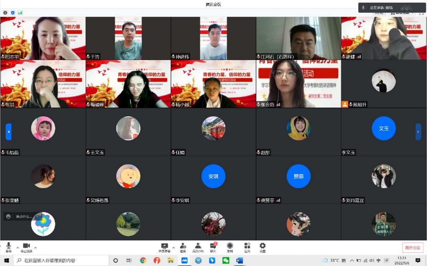 传承五四精神,青年担当重任。为庆祝建团100周年,365英国上市官方网站国际中文教师党支部、研究生第二党支部全体师生党员于5月6日中午13:30汇聚云端,联合举办了“青春的力量,信仰的力量”主题党日活动。