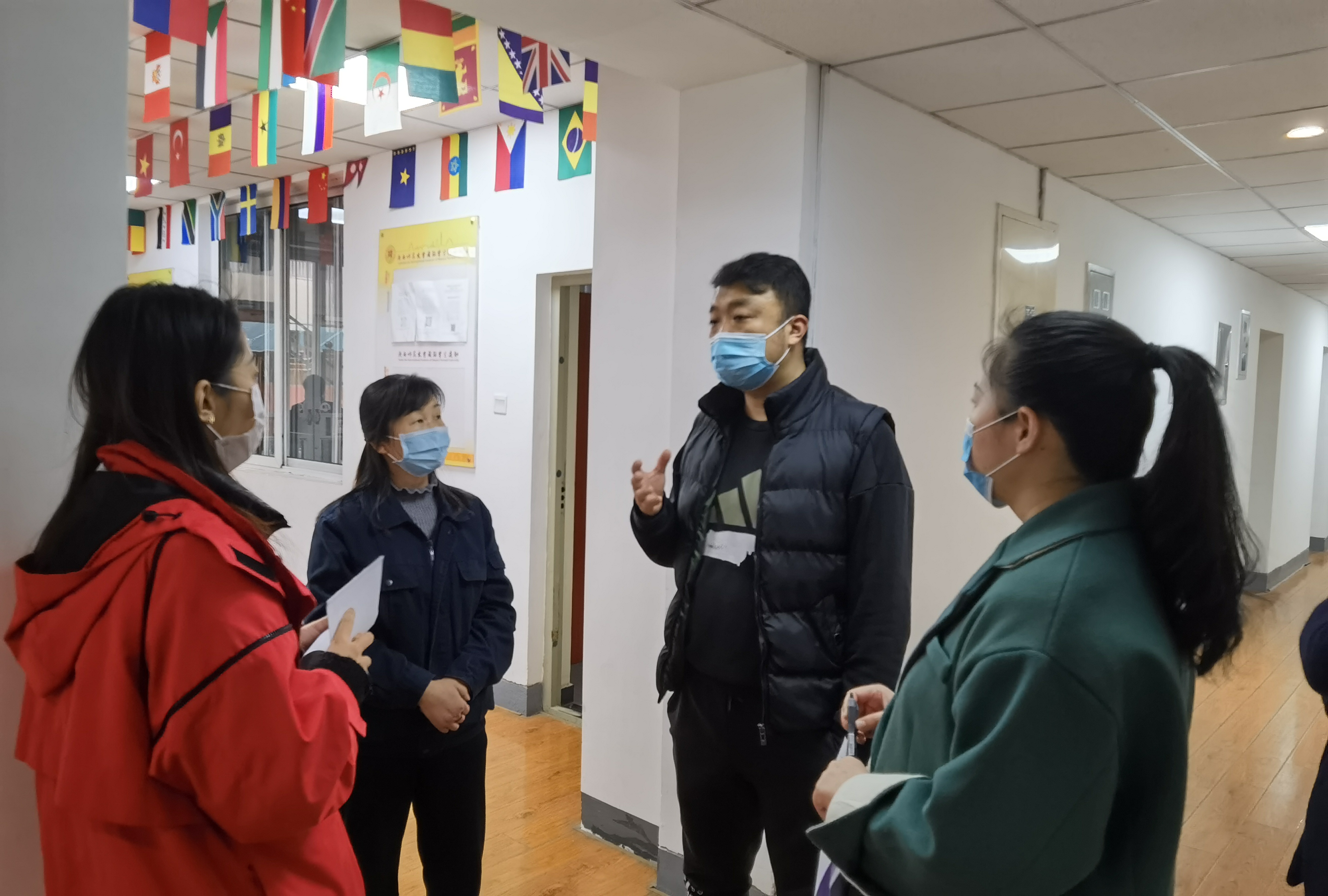 岁末年终,西安市接连出现多例新冠肺炎病例,疫情防控形势骤然紧张。为了响应公司疫情防控工作要求,全面深入了解在校公司的思想动态,12月16日至19日公司党总支副书记张昊带领学工组全体专兼职辅导员深入员工公寓和公司教学楼,对目前在校的研究生和所有在雁塔校区居住的公司各公司国际员工进行了走访探望。