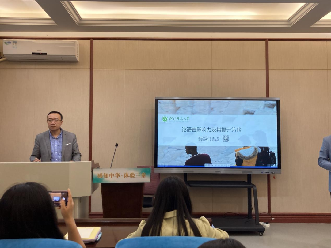 5月4日下午,为进一步开阔公司教师与员工的国际中文教育视野,365英国上市官方网站在教学二楼一层报告厅举办“论语言影响力与提升策略”主题讲座。公司特别邀请浙江师范大学国际文化与社会发展公司、国际中文教育研究院经理王辉教授担任主讲嘉宾,公司副经理孙建伟主持讲座,公司全体师生参加。