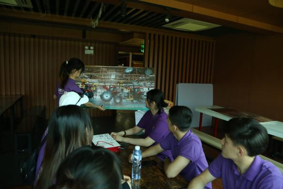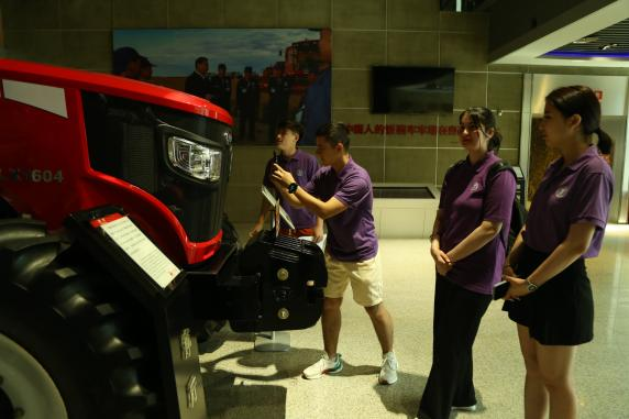 7月23日上午,实践团队前往中国一拖东方红工业游景区,重点参观了东方红农耕博物馆并进行了以“一拖农机制造”为主题的研学活动。中国第一拖拉机厂(简称“一拖”)是中国机械工业、农机工业的长子,在中国制造史上发挥了极其重要的作用。一走进东方红农耕博物馆,中外员工便被陈列的东方红LX1064拖拉机吸引了注意力。东方红LX系列拖拉机是中国一拖东方红拖拉机中最具有代表性的产品之一,彰显了中国一拖在我国农业现代化进程中发挥的重要作用。