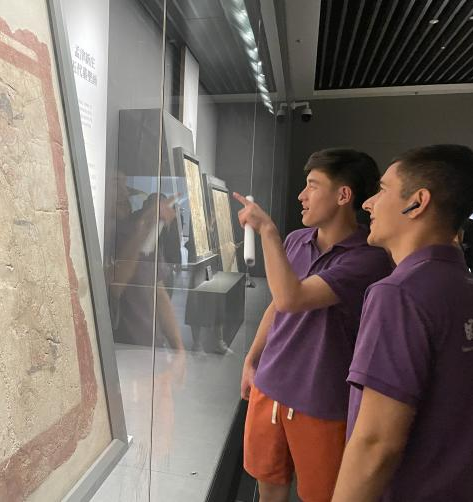 首先,中外员工们参观了历代墓葬展区,其中的唐安菩夫妇墓给大家留下了深刻的印象。据传,安菩来自古代乌兹别克斯坦地区,经由丝绸之路来到中国,其陪葬品多为唐三彩骆驼,印证了古代丝绸之路的繁荣。接下来,讲解员向大家介绍了《地府千秋》河南古墓壁画大观。墓葬壁画出现于西汉早期,东汉开始流行,题材多为神话传说、历史故事、人物山水等。镇馆之宝之一的《胡人牵驼壁画》是洛阳已发掘墓葬壁画中唯一一个出现运输货物为丝绸的壁画,为洛阳是丝绸之路东起点的说法再添力证。最后,实践团队参观了北魏宣武帝景陵。北魏宣武帝巩固了孝文帝的汉化改革成果,书写了各民族文化互鉴融通的精彩篇章。