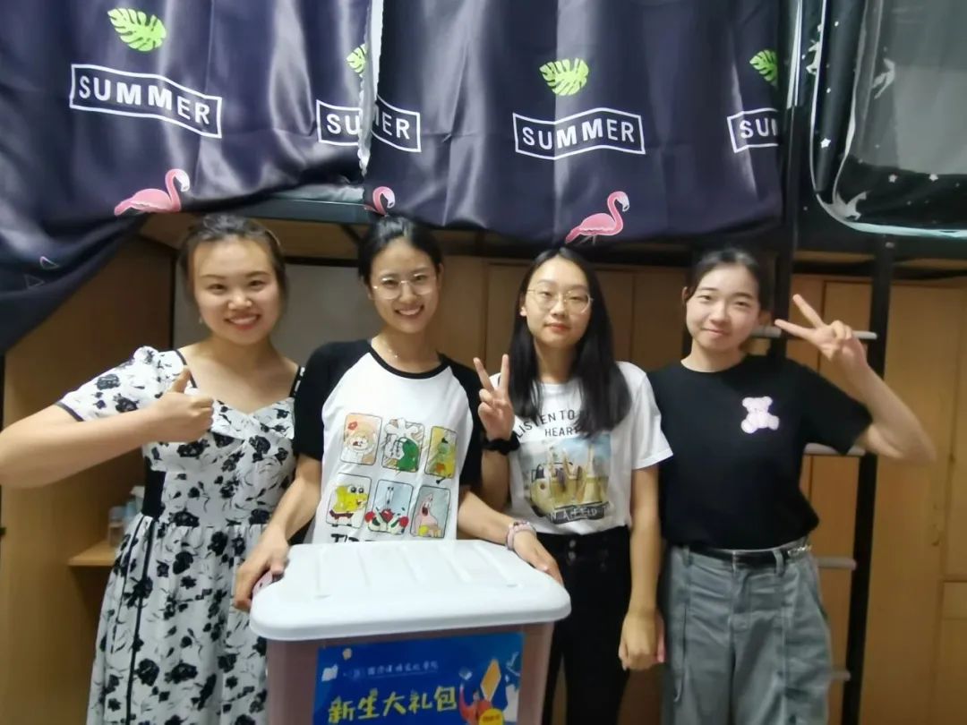 老师们步入新生寝室,为同学们送上公司精心准备的新生大礼包,内含毛巾、水杯、笔记本等生活必备品,为新生的生活、学习提供便利。