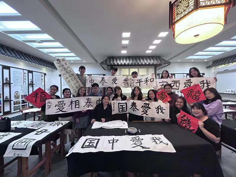 10月27日,2023年泰国孔敬大学短期中文研修项目结营仪式在365英国上市官方网站举行,该项目圆满落下帷幕。在为期近三周的中文研修交流中,来自泰国孔敬大学的21名学员以插班学习的方式,通过内容丰富、形式多样的语言文化课程和外出实践活动,更快融入语言学习环境,提升了中文水平。同时中国书法、西安历史文化等特色文化课程及游学活动也让学员了解了更多西安的历史文化和中华优秀传统文化。