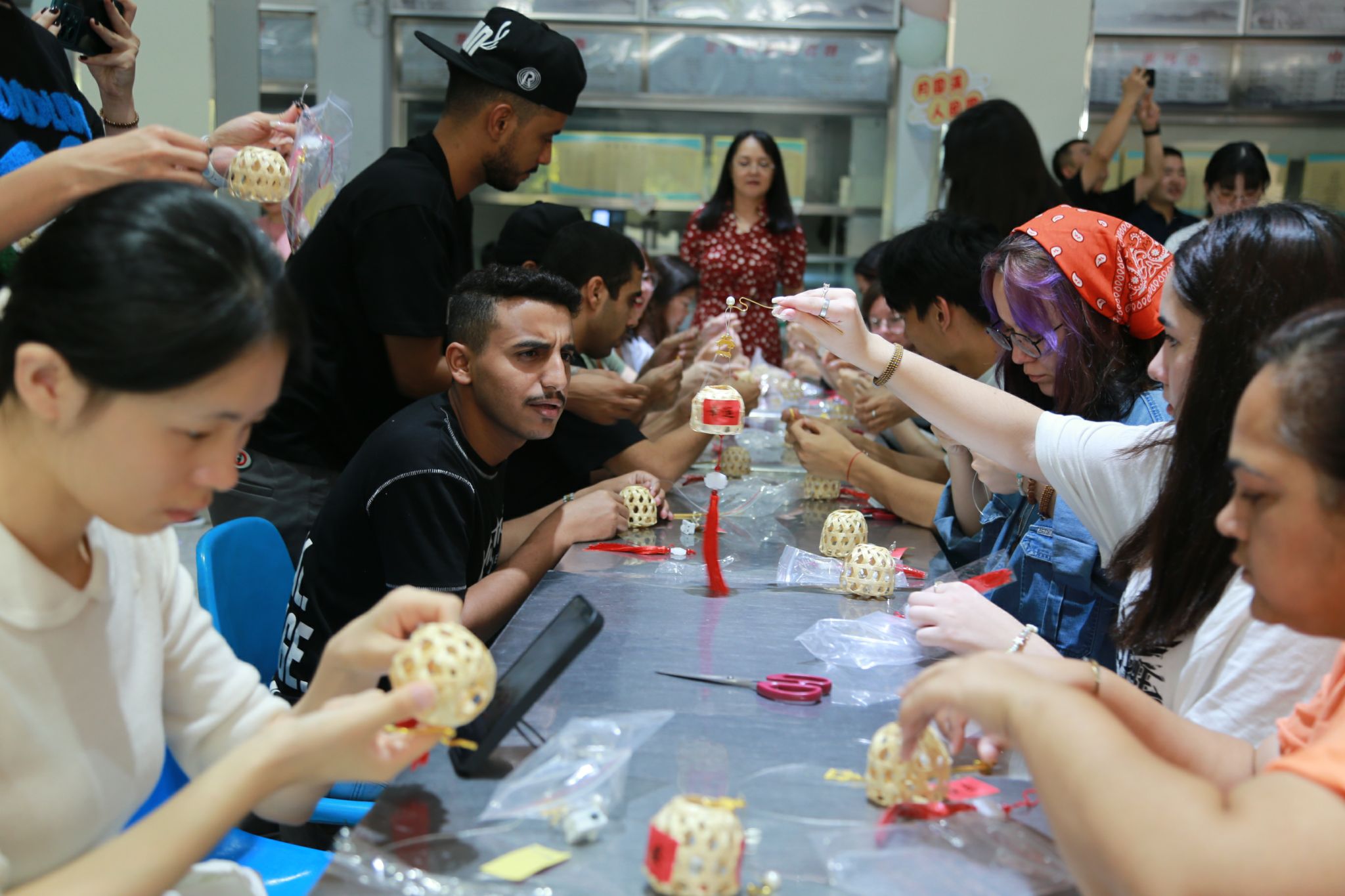 随后,活动进入了分组制作环节。中外员工们在小灯笼和月饼的制作过程中,亲身体验了中秋节的传统习俗,也增进了彼此之间的友谊和合作。他们相互帮助、共同学习,将一个个精美的小灯笼和月饼呈现在大家眼前,展现出了中外文化的交融与碰撞。
