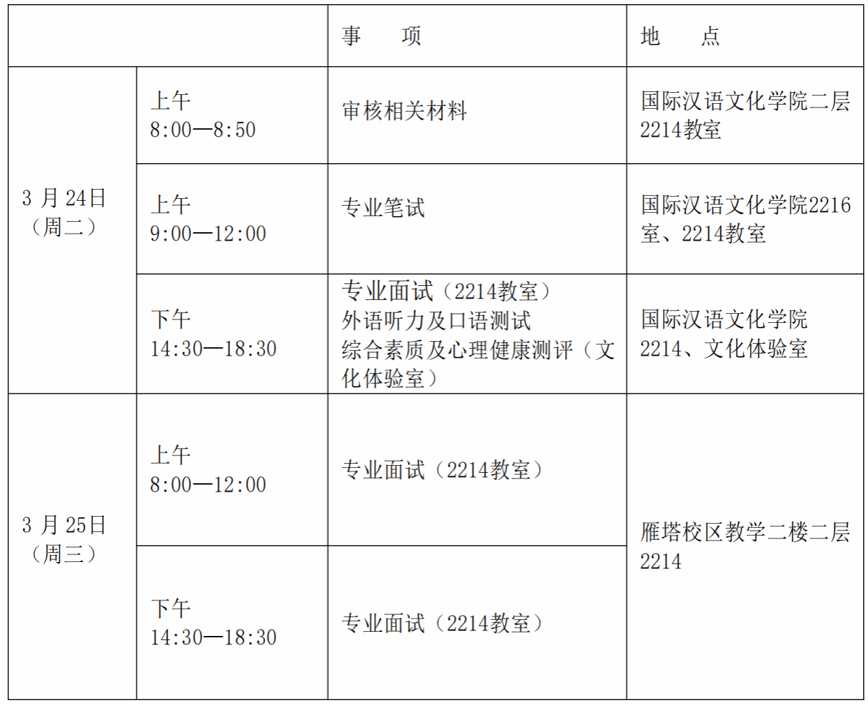 (一)复试时间和地点