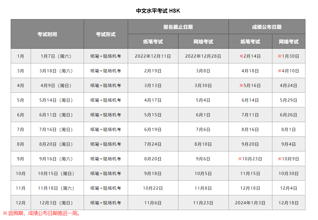 2023年考试计划